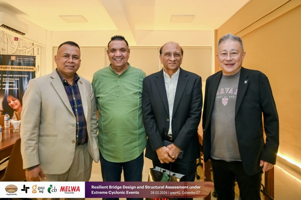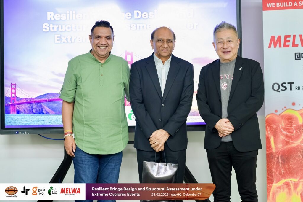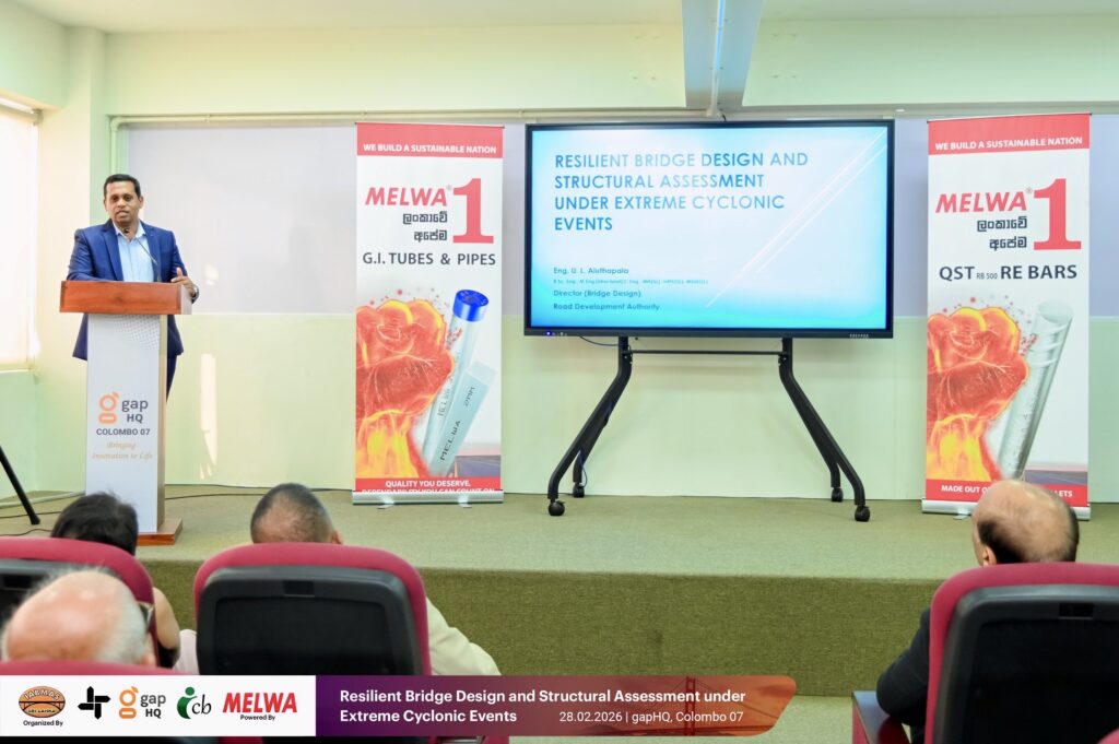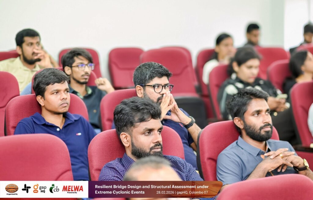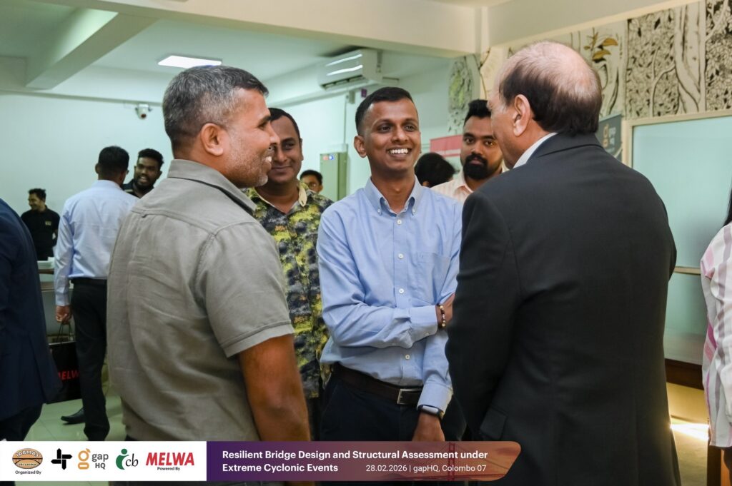 IABMAS Sri Lanka, in collaboration with gapHQ and supported by Melwa, organized a technical seminar on bridge resilience design and structural assessment under extreme cyclonic events at gapHQ in Colombo.
